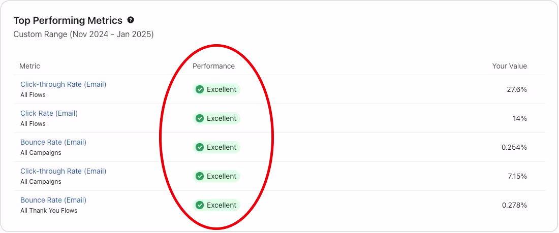 - Five core deliverability and engagement metrics all rated Excellent